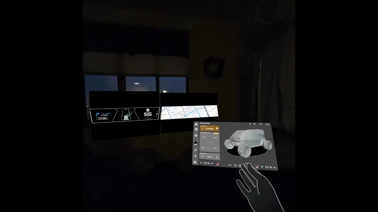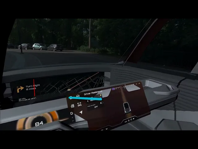 The refined interface was integrated with the final vehicle model in Unity, allowing validation of: